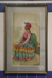 Original Decorative Framed Watercolor Painting 43cm wide x 69cm high
