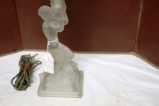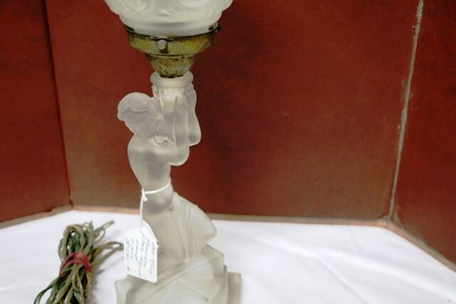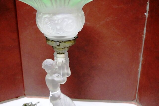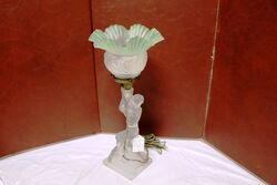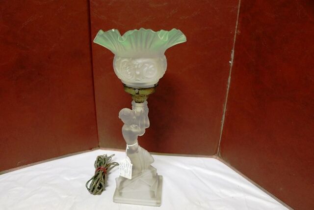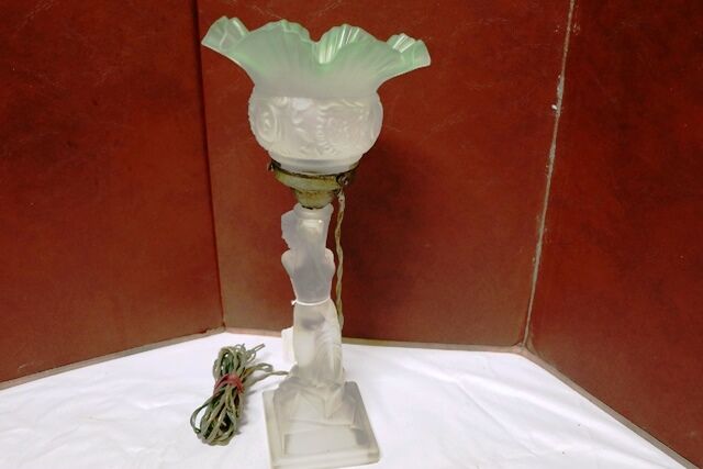 Art Deco Blue Glass Crinoline Lady Boudoir Lamp & Shade.