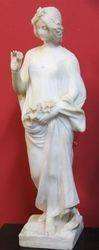 Art Nouveau alabaster figure of The Flower Seller signed A Fagioli. Gouni Freres Paris. C1890. 63 cm high, 21 cm wide, 15 cm deep