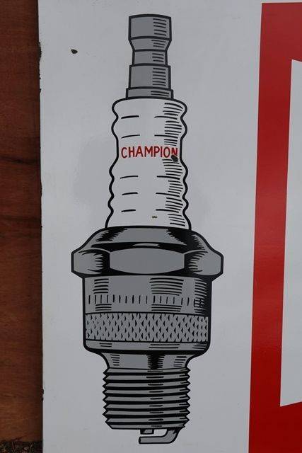 Champion Spark Plugs Enamel Pictorial Advertising Sign #