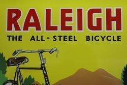Raleigh All Steel Bicycle Pictorial Enamel Sign. Marked printed in England series no 3809. In wonderful condition, great colour and gloss.
