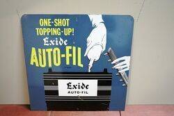 Vintage Exide Auto-Fil Battery Metal Sign. # 46cm square.