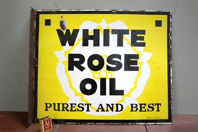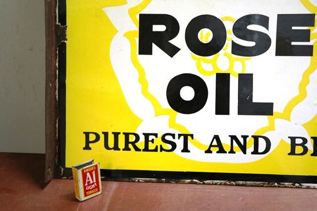 Early Vintage White Rose Oil Purest and Best, Double Sided Adv Sign 60cm wide x 46cm high. NO TOUCH UPS