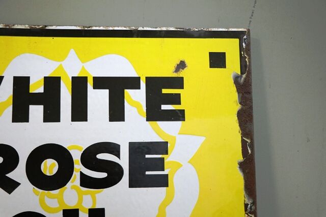 Early Vintage White Rose Oil Double Sided Adv Sign #