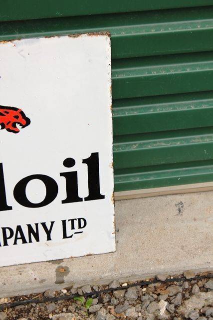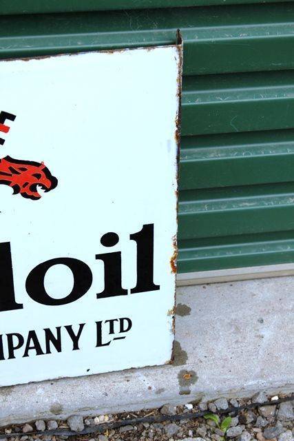 White May Royal Standard BP Lamp Oil Double Sided Enamel Sign. A Very Honest & Clean Post Mount Sign. 46cm wide x 30cm high.