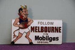 ID: A3061Enamel Mobilgas Badge "Melbourne AFL" By Laughtons Melbourne