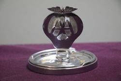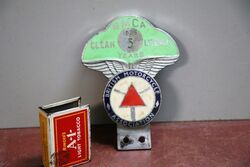 ID: AUTP1184A Vintage Regimental Car Badge with Central St Christopher. and a Desmo Badge Bat Attachment.
