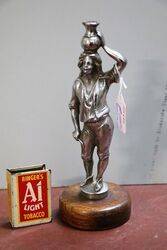 ID: A5660A Vintage Cast Mascot of a Male Water Carrier. On a Round Oak Display Base. 20cm high.