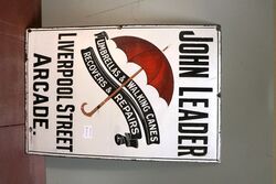 Vintage John Leader Pictorial Umbrella Enamel Adv, Sign. #