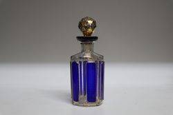 Victorian Blue Overlay Glass Scent Bottle with Fine Gilt Decoration and Original Stopper.