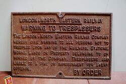 ID: SM1003Vintage Cast Iron London-North Eastern Railway Warning Sign. 67cm wide x 43cm high.