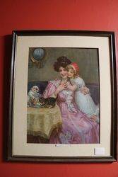 Wonderful Framed Victorian Print , Naughty Kittens Dated 1908 . Wonderful Image. 55cm wide x 68cm high