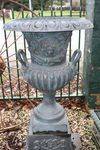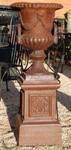 ID: CI135 NMassive Cast Iron Toulouse Urn And Base; 216cm tall x 152cm base-95cm diameter...weight 820kgs (including pallets). This Toulouse is huge and requires a large garden to be displayed at its best. If you want a impressive garden feature you wont beat thi