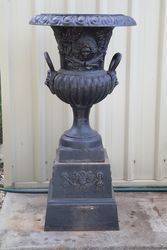 ID: CI28Sonte Cast Iron Urn On Base . 45x45x80cms weight 47kgs.