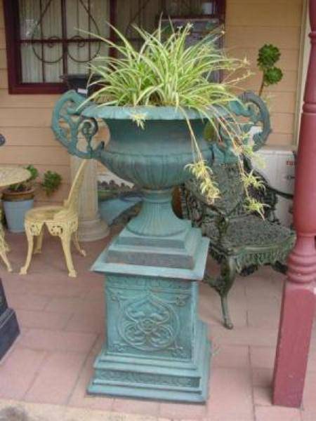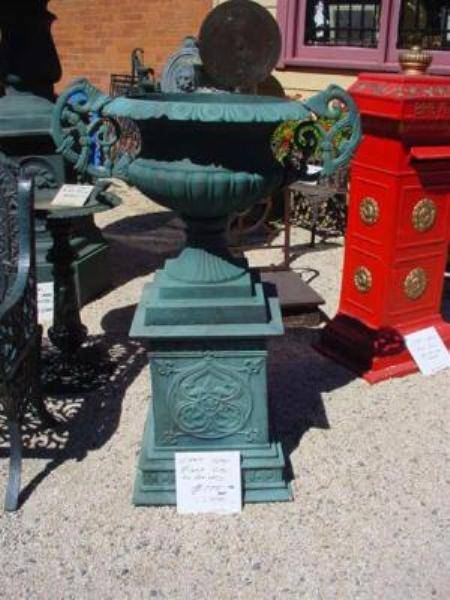 Large Cast Iron Romano Urn + Base 70cm x 155cm high.. weight 175 kgs,