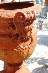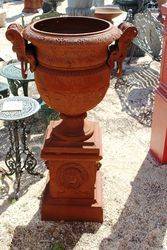 Cast Iron Toulouse Medium Urn and Base.Color blue bronze.. 97cm dia, 96cm total height. 145kgs. Base size 43cm square x 44cm high.