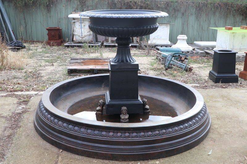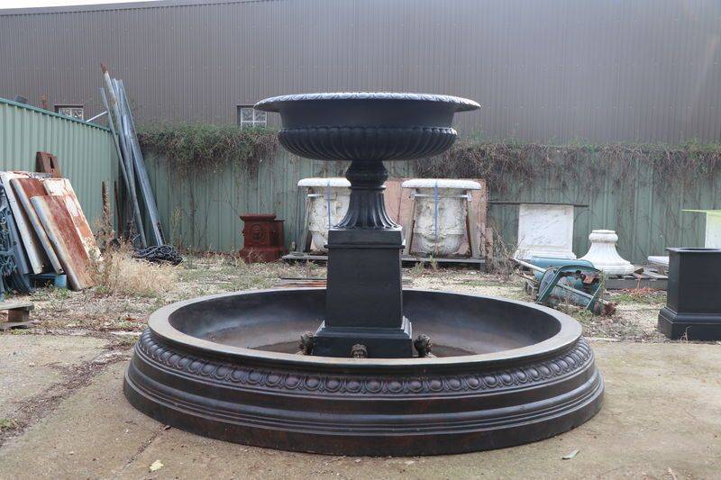 Cast Iron Toulouse Urn Fountain in a 2.3mt Matching Fiberglass Pond. Lovely combination and very simple to set up. Fountain as pictured $2250.00...2.3mt Pond $2650.00.. A 2mt Pond can also be used @ $2250.00 Cast Iron feet $68.00ea.