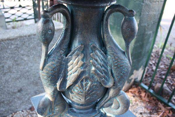 Small Romano Cast Iron Urn And Base , 38cm dia x 80cm high. weight 41kgs.