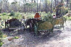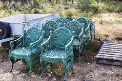 Cast Iron Green 5 Piece Garden Setting.,Nice Quality and attractive in any garden. Table 60 cm diameter x 64 cm high. Chair 85 H x 45 D x 41 W. 95 kilograms total.
