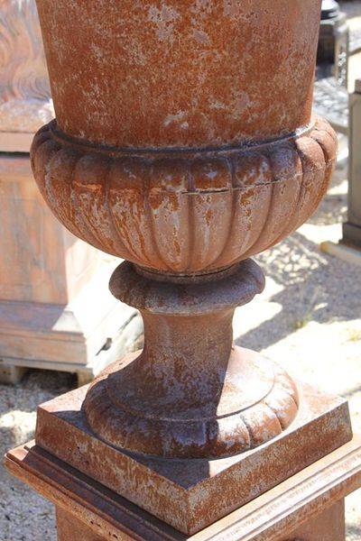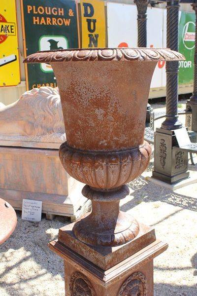 Massive Cast Iron Toulouse Urn And Base; 216cm tall x 152cm base-95cm diameter...weight 820kgs (including pallets). This Toulouse is huge and requires a large garden to be displayed at its best. If you want a impressive garden feature you wont beat thi