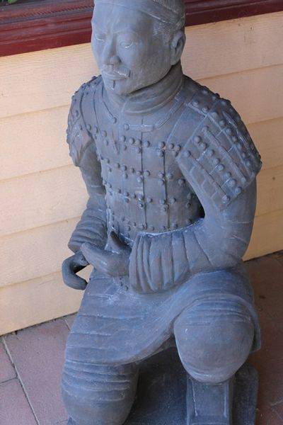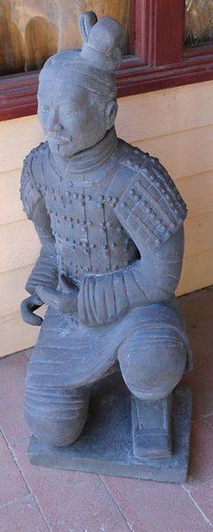 This statue is an original copy of the Terracotta Warriors made from the same clay used 2000 years ago to produce the originals, this warrior was made on site at the Qin Shi Huang Terracotta Warriors and Horses Museum where they are currently still excavating the original Terracotta Warriors and is an exact copy of those warriors found at this site. The warrior measures 123cm tall x 45cm wide