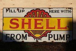 Early Shell From The Pump Enamel Advertising Sign . 185cm wide x 91cm high