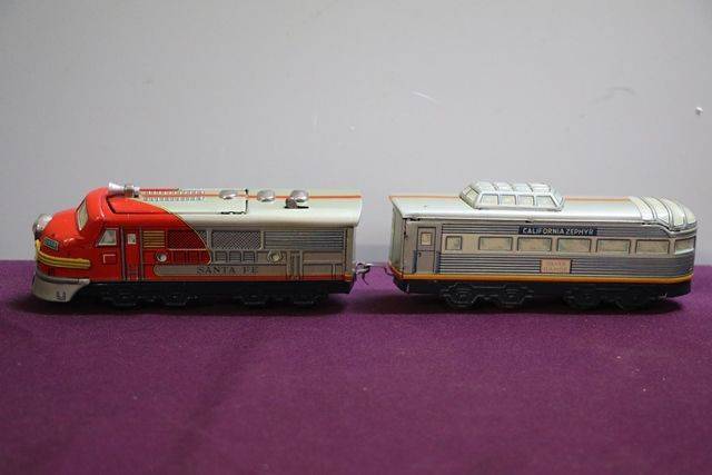 The set includes the Santa Fe Engine and a California Zephyr Railcar