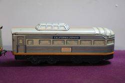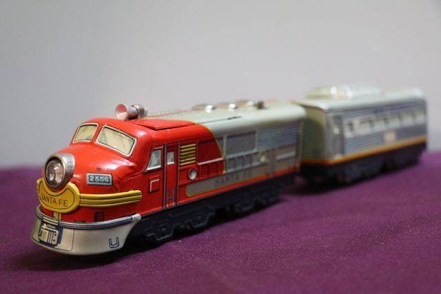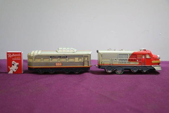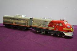 Toy TM Japan lithographed Tin Santa Fe Diesel Battery Cable Train With Headlight