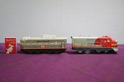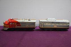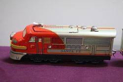 TM Japan lithographed Tin Santa Fe Diesel Battery Cable Train With Headlight
