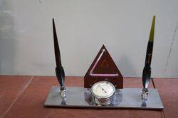 Rare Lockheed Desk Pen Holder with Barometer & Thermometer in the Design of the 'L' for Loockheed. Rare and Unusual Item.