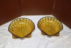 Art Deco Pair of Amber Glass Shell Bowls. Lovely quality.