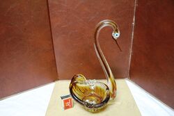 Vintage Quality Murano Amber Glass Swan Ashtray. Has amassing Piercing blue eyes.