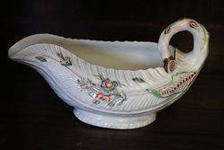 Extremely Rare and Early Worcester Polychrome Cos Lettuce Leaf-Shaped Sauce Boat. In Amazing Condition for AGE..