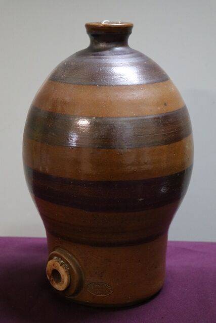 Ceramic Rich Cream Sherry Dispenser Barrel.# 31cm tall 26cm wide