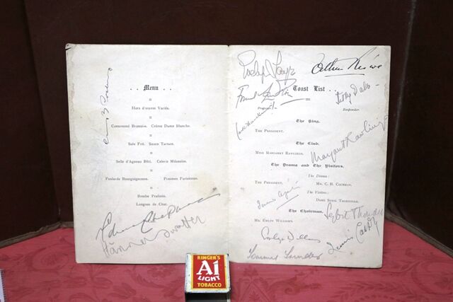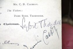 Autograph, 1940 Gallery First Nighters Club Signed Menu. " Sybil Thorndike