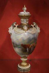ID: ANT275Royal Worcester Lidded Vase with Highland Cattle By J.Stinton c1924 slight restoration 15450