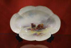 ID: ANT272Royal Worcester oviform Shaped Bowl decorated with highland cattle by J.Stinton c1934 27cm long