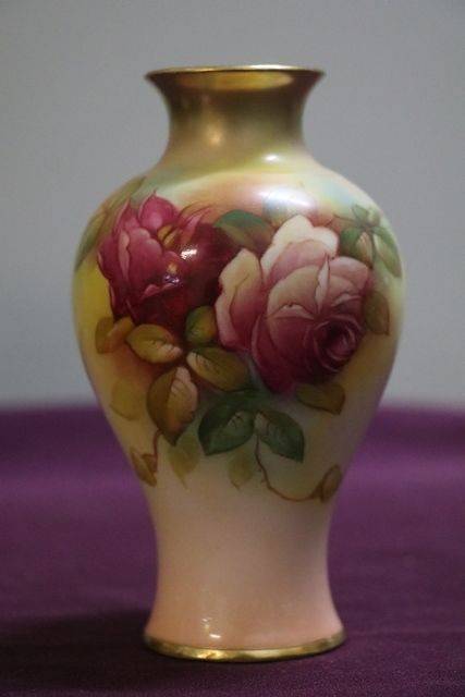 Royal Worcester Hand Painted Porcelain Vase C1941 8cm wide x 14cm high