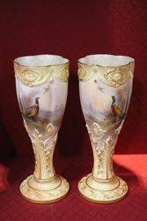 Pair Of Royal Worcester Goblet Vases C1908 By Jas Stinton