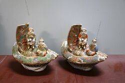 ID: FC1450Lovely Quality Satsuma Japanese Porcelain Boat with 2 Sailors. 19cm high. 2 BOATS AVAILABLE, SEE ALSO FC1449