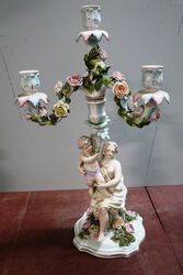 ID: FC148519th Century Antique German Porcelain 3 Branch Candelabra. Depicting a seated figure of mother and child.. 48cm high.