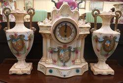 ID: C278A Lovely Edwardian 3pc China Clock Set Large Part 32cm wide x 40cm high x 13cm deep small parts 19cm wide x 38cm high