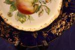ID: M2159Hammersley Cobalt blue dessert bowl C1912-39 stunningly decorated with fruit and gilting on a cobalt blue background in very good condition slight rubbing measures 22cm across