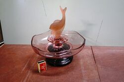 Art Deco 4-Piece pink glass Flying Fish on Stand Float Bowl #