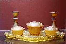 6 Pieces Deco Frosted Amber Glass Trinket Set C1920 #