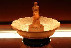 ID: GL1766Art Deco 3Piece Amber Glass Lucretia Float Bowl. Minor Nibble to elbow and Chip to base of figure.