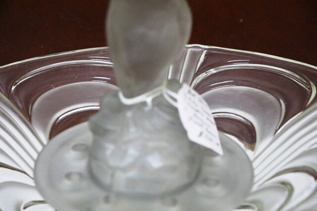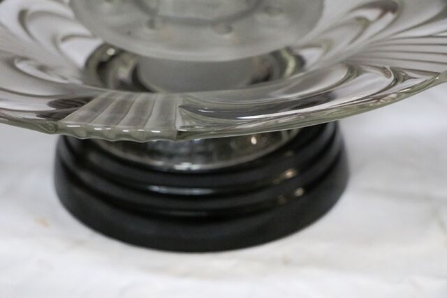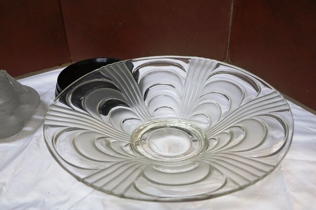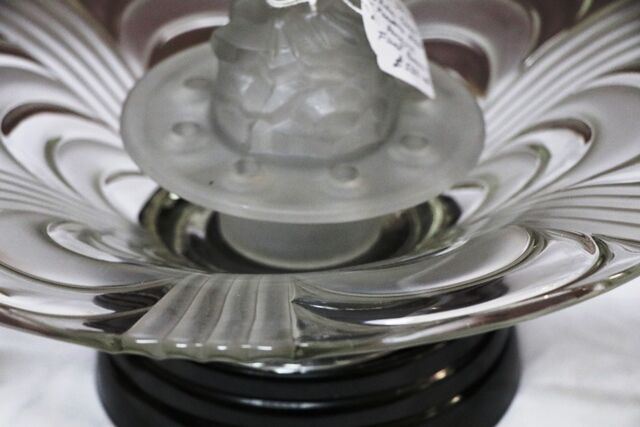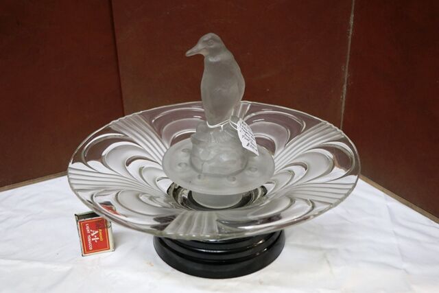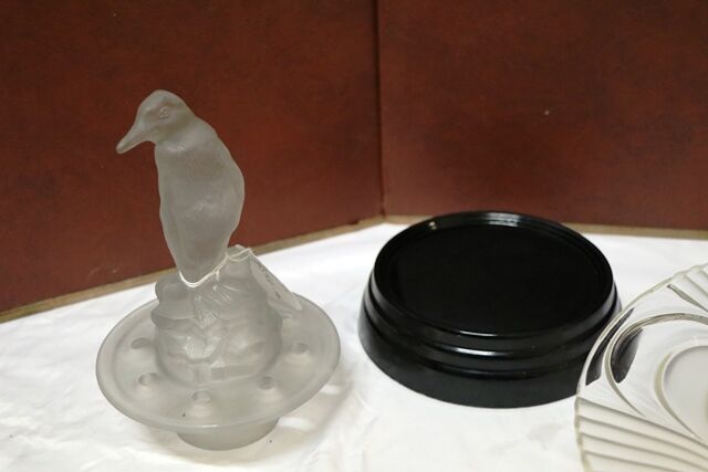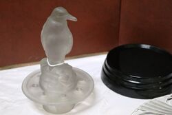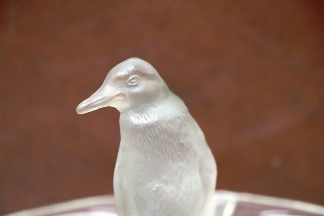 Art Deco 3-Piece clear and frosted glass Libochovice 'Penguin' Float Bowl set. Penguin figure with integral frog has 1 small chip to base of frog. Bowl signed in relief CHECOSLOVAQUIE- has manufacturing flaws only C1930's.