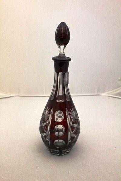 Quality Ruby Overlay Cut Glass Decanter 37cm tall 12cm wide