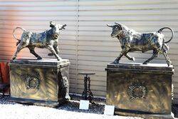 Stunning Pair of Cast Iron Bulls . Complete with Matching Bases. BASES DISPLAYED IN RUST. Bull only 125cm wide x 60cm deep X 95cm high. On Base 180cm high.