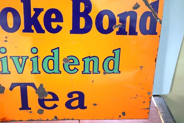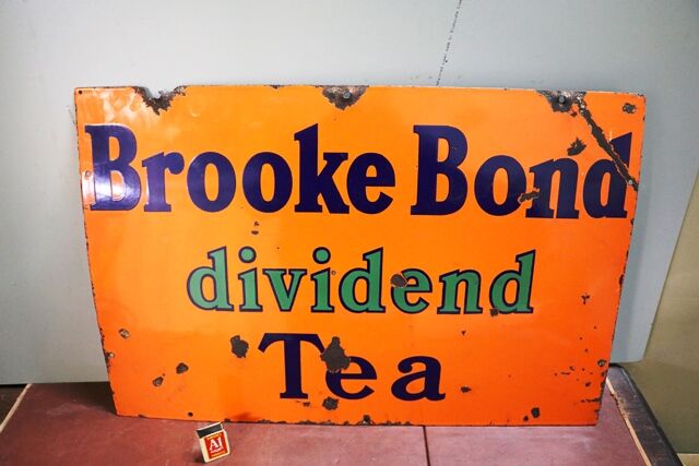 Rare Vintage Van Houten's Cocoa Strip 3 piece Enamel Adv Sign. Wonderful Condition. 415cm wide x 56cm high.
